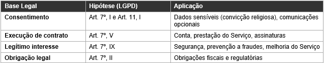 Ao criar uma conta, você declara que leu e compreendeu esta Política e consente com o tratamento de seus dados conforme aqui descrito.